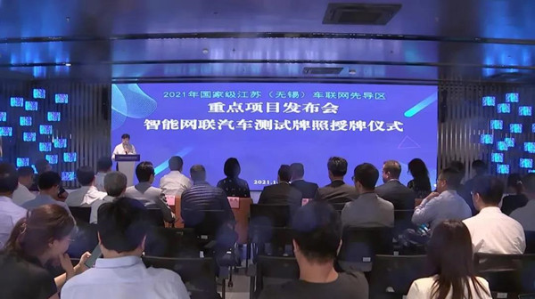 10月15日,2021年国家级江苏(无锡)车联网先导区重点项目发布暨智能网联汽车测试牌照授牌活动在无锡物联网创新促进中心举办。无锡市人民政府副市长高亚光,市工业和信息化局、市公安局、市交通运输局、公安部交通管理科学研究所等相关单位领导参加活动,我司潘董、创新研究院钱院长作为重点项目揭榜单位代表参加本次活动。